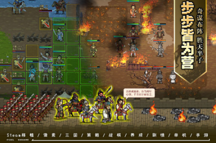 這款戰(zhàn)棋游戲?qū)⑷龂?guó)作為大背景,制作組就會(huì)選擇純手繪的像素點(diǎn),為大家展現(xiàn)出復(fù)古的韻味。玩家會(huì)在劉關(guān)張三兄弟的視覺(jué)切換下,然后展開(kāi)戰(zhàn)旗之旅。劇情在經(jīng)過(guò)精細(xì)的打磨之后加上復(fù)古的像素戰(zhàn)棋類玩法確實(shí)很吸引人,玩家就能感覺(jué)三國(guó)時(shí)期的風(fēng)云變幻。