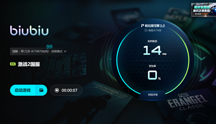 其實(shí)無(wú)論是哪一個(gè)部分引起的掉線,都和數(shù)據(jù)傳輸有關(guān)系,游戲產(chǎn)生數(shù)據(jù)傳遞到服務(wù)器,服務(wù)器處理數(shù)據(jù)及時(shí)反饋給客戶端,這是完整的游戲過程,網(wǎng)絡(luò)異常引發(fā)數(shù)據(jù)不能正常傳遞,就會(huì)出現(xiàn)掉線類問題。所以處理掉線,可通過使用近期剛進(jìn)行升級(jí)的biubiu加速器,處理掉網(wǎng)絡(luò)數(shù)據(jù)傳送不及時(shí)性以及缺失不完整性問題即可。