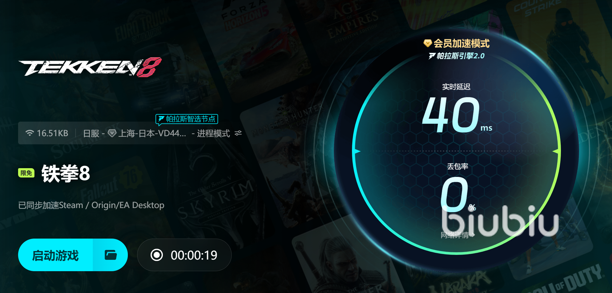 使用起來也非常簡單,在首頁搜索鐵拳8,找到對(duì)應(yīng)的游戲,點(diǎn)擊開啟加速,瞬間就能為你構(gòu)建高速鐵路級(jí)別的加速通道,優(yōu)化網(wǎng)絡(luò)環(huán)境。加速完成后,進(jìn)入詳情界面,延遲、丟包率等數(shù)據(jù)一目了然,讓你對(duì)網(wǎng)絡(luò)狀態(tài)了如指掌。在biubiu的助力下,不管是開啟劇情模式,還是酣暢淋漓地戰(zhàn)斗,都能順暢無比,輕松釋放技能,避免失誤,盡情享受鐵拳8的魅力。