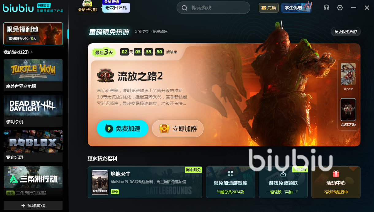 除了有強(qiáng)大的加速能力之外,biubiu加速器還會(huì)上線(xiàn)專(zhuān)屬的游戲?qū)^(qū),在專(zhuān)區(qū)內(nèi)玩家就可以第一時(shí)間獲取和游戲相應(yīng)的資訊。包括版本更新內(nèi)容,還有限時(shí)活動(dòng)公告。無(wú)論玩家是想要了解全新的戰(zhàn)術(shù)玩法,還是想掌握最新的槍械改裝,全部都會(huì)看到詳細(xì)的內(nèi)容。專(zhuān)區(qū)還會(huì)給玩家提供一個(gè)交流互動(dòng)的平臺(tái),大家在這里就可以分享自己的作戰(zhàn)心得,然后和其他的愛(ài)好者一起去探討游戲的樂(lè)趣。同時(shí)專(zhuān)區(qū)還會(huì)定期的更新游戲的福利活動(dòng),大家都可以去參與。
