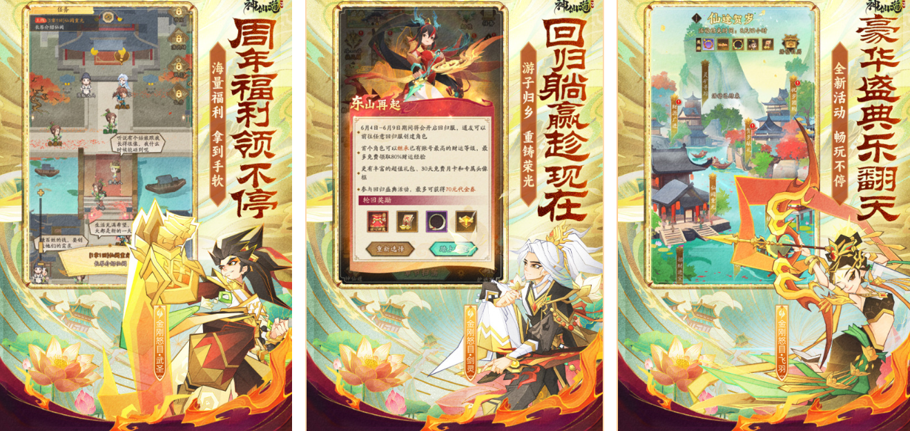 《神仙道3》這款游戲同樣以中華傳統(tǒng)文化為底蘊,打造出了一個專屬于華夏文明神話體系的神話世界,所有的角色都以敦煌顏色為基底,每一個神話人物的形象都讓玩家們感到驚奇。玩家們在游戲的過程中不僅能重新體驗到傳統(tǒng)文化故事的演繹,還能夠扮演為其中的角色一起幫助神話人物們作戰(zhàn)。同時所有的神話人物可以化身為卡牌,供玩家們收集和培養(yǎng),玩家們在培養(yǎng)之后可以將它們放置在棋盤上戰(zhàn)斗。此外,這款游戲結合了戰(zhàn)斗策略和卡牌放置的元素,讓玩家們能夠在回合制的玩法下探索出更加豐富的卡牌搭配組合方式,來豐富這款游戲的玩法。