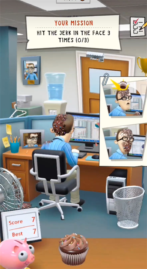 模擬了辦公室中的很多場景,在辦公的多個場景中都可以玩各種惡作劇,整個過程都是十分解壓開心的。出現員工辦公時,你還可以使用不同的物體向他砸去再扔東西或者是攻擊其他物品時,總能夠讓我們的心情得到少許的放松互動的場景還是非常多的,在互動產生之后還會出現不同的表情,玩家的心情也會隨著各種表情的變化而變化。紙球、水氣球、玉米餅,這些都是可以作為道具進行投擲和發(fā)起攻擊的,完成這些攻擊任務還能夠獲得很多的獎勵。