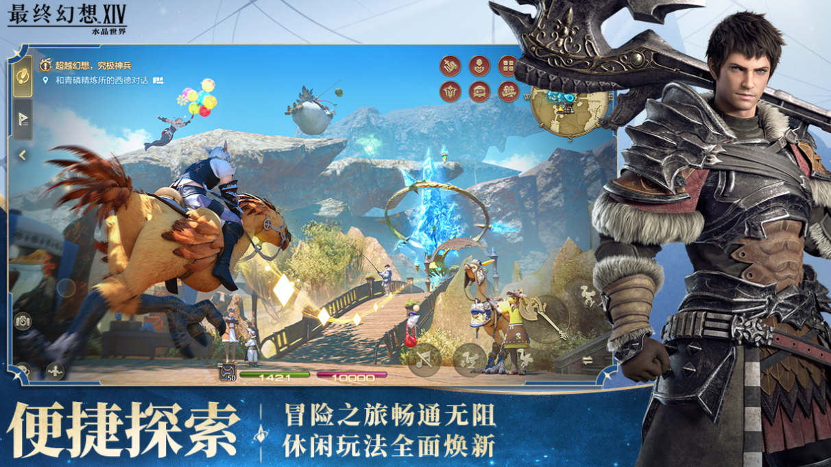 在手機(jī)端本作還是第一款擁有“最終幻想”IP的MMO作品,超前的戰(zhàn)斗屬性跟全面革新的玩法值得挑戰(zhàn),劇情故事與最終幻想的世界完美結(jié)合,繼承經(jīng)典的冒險(xiǎn)探索玩法令MMO粉絲回味無窮,多樣職業(yè)的刻畫和捏臉玩法加持顯得極為自由,渡渡鳥、石頭怪等最終幻想經(jīng)典魔獸生物也會(huì)與你一起交互喲。
