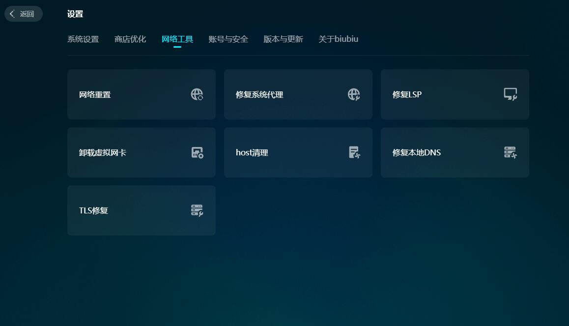 除了基本的游戲加速功能外,biubiu內(nèi)還添加了許多實用的網(wǎng)絡(luò)工具,比如重置網(wǎng)絡(luò)、修復(fù)本地dns等等,有了這些小工具的幫助,以后無論是上網(wǎng)沖浪,還是和朋友開黑,都不會被網(wǎng)絡(luò)問題影響,實際的上網(wǎng)體驗也會更上一層樓。