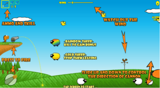 廣闊的山上很多綿羊都在到處尋找食物,在尋找食物時,還會發(fā)出特別嘈雜的聲音,擾亂了自己的思緒,而你卻站在了高高的山尖上,為了清理現(xiàn)場,為了讓自己的耳根特別安靜,展現(xiàn)出自己獨特的射擊技能,在遠處精準瞄準后,即可發(fā)射弓箭,將所有山坡上的綿羊全部打死。屏幕的左下角有控制按鍵以及發(fā)火的操作,瞄準后只需直接點擊即可,但卻更加注重的就是射擊的角度。