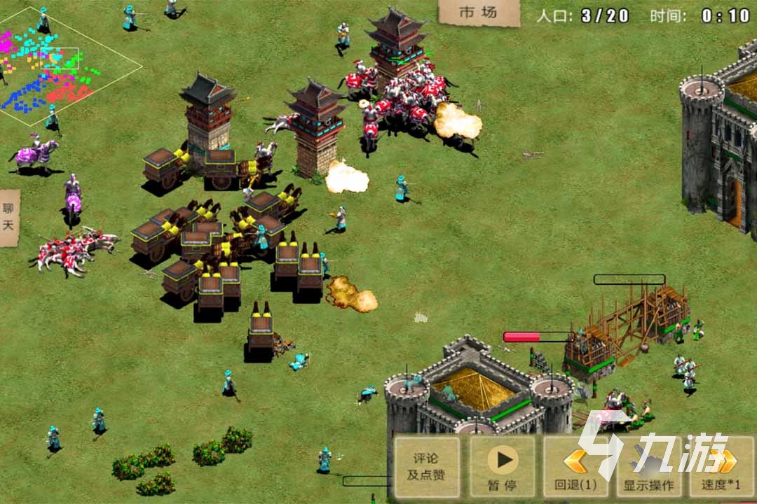 可以理解為簡(jiǎn)化了上的電腦上的帝國(guó)時(shí)代,包含農(nóng)民采集生產(chǎn)、發(fā)展經(jīng)濟(jì)、強(qiáng)化軍事、擊敗敵人等等。游戲支持1~3人的對(duì)戰(zhàn),各種兵種、建筑都需要你手動(dòng)控制,所以有一定的操作門檻哦。