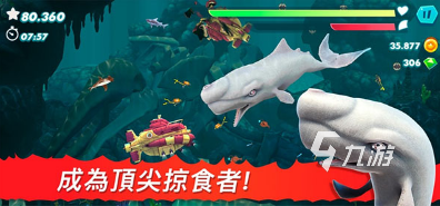 玩家化身兇猛鯊魚,在危機(jī)四伏的海洋世界開啟吞噬進(jìn)化之旅。游戲設(shè)定于神秘海底,人類與海洋生物共存,弱肉強(qiáng)食是唯一法則。玩家需操控鯊魚不斷游動捕食,從礁鯊起步,逐步進(jìn)化為虎鯊、大白鯊甚至鄧氏魚等傳奇物種,每種鯊魚擁有獨(dú)特技能,如鯊斯拉的溶解輻射可秒殺敵群。游戲采用3D寫實(shí)畫風(fēng),海水光影靈動,捕食血霧特效增強(qiáng)沉浸感。背景音樂節(jié)奏緊張,配合嘎吱啃咬聲,營造出真實(shí)狩獵氛圍。