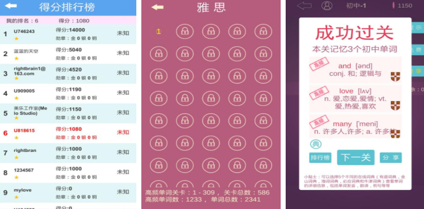 消消樂是比較常見的游戲,英語消消樂能,擁有用同樣趣味的方式,讓玩家輕松掌握大量的英文單詞,游戲里會(huì)有大量的關(guān)卡,每一個(gè)關(guān)卡中都會(huì)穿插著大量玩家已經(jīng)掌握的詞匯,還會(huì)出現(xiàn)一些新的詞匯,能通過這種方式鞏固已經(jīng)學(xué)過的知識(shí),也能不斷學(xué)習(xí)新的單詞,提高英語詞匯量,里面涉及了各個(gè)不同的等級(jí),想要學(xué)習(xí)英語的都可以嘗試一下。