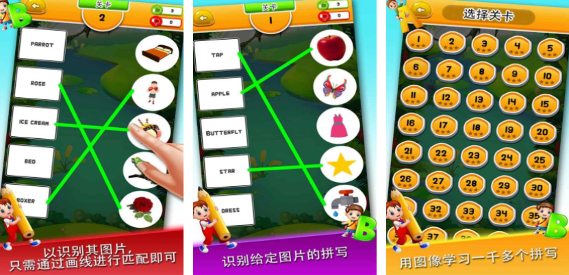 英文連連看是比較考驗(yàn)玩家英文基礎(chǔ)能力的一個(gè)游戲,里面不再是單純的從字母學(xué)起,就是會(huì)把單詞和物品進(jìn)行組合打亂,大家需要做的就是,把每一個(gè)單詞和對(duì)應(yīng)的物品連接起來,每個(gè)關(guān)卡中都會(huì)有大量的物品,能通過這種方式,快速積累玩家對(duì)于詞匯的掌握,挑戰(zhàn)英語詞匯量的可以來嘗試這個(gè)游戲,能通過關(guān)卡里的這些圖畫,更加深刻的記憶這些單詞的意思。