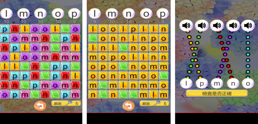 好好玩英文字母能讓玩家,以更加輕松的方式,掌握關(guān)于英文字母和單詞的發(fā)音,游戲開始之后會(huì)有大量的寶石,每一個(gè)寶石上都會(huì)有很多字母,通過合成這些字母,系統(tǒng)就會(huì)發(fā)出對(duì)應(yīng)的音標(biāo),這樣在游戲里就可以加深印象,牢記每一個(gè)英文單詞的發(fā)音,通過字母之間的互相聯(lián)合也能記憶大量的單詞,除了傳統(tǒng)的消除之外,還會(huì)有發(fā)音檢查玩法,能讓玩家不斷鞏固對(duì)于這些音標(biāo)的掌握能力。