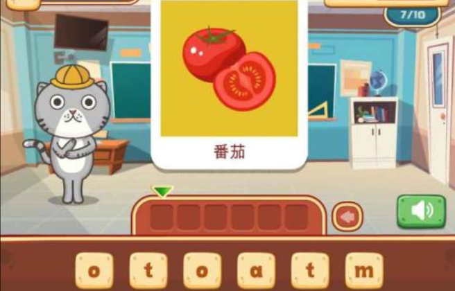小小單詞王是一個(gè)玩學(xué)結(jié)合的游戲,游戲里會(huì)有一只非常可愛的小貓陪伴玩家,可以和小貓一起在虛擬的課堂上,認(rèn)知基礎(chǔ)的水果蔬菜,每一個(gè)水果蔬菜背后還會(huì)有對(duì)應(yīng)的顏色,在果蔬下方會(huì)有空格,玩家需要把備選欄中的字母,通過正確的順序組合排列在上方,借助這種趣味的方式,既可以認(rèn)知水果蔬菜,又能對(duì)顏色以及字母單詞有更深入的了解。