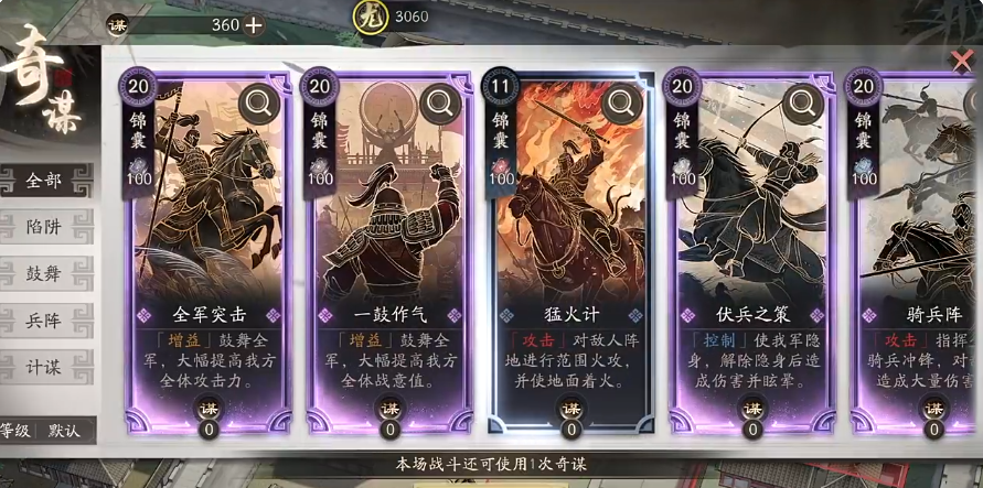 該作品自然是沿用了戰(zhàn)棋游戲的回合制的核心,不過在策略深度上進行了深度的研究,傳統(tǒng)的戰(zhàn)棋也有兵種克制,但是有些可能就是有點一刀切了,該作品里的克制,有“勇、巧、嚴”這種三維克制關系,甚至能具體到每一場戰(zhàn)斗,都需要合理對武將技能組合,兵種屬性進行搭配,同時還需要對地勢進行利用,才可能會觸發(fā)合擊等連鎖招式;還有“奇謀”系統(tǒng)的加持,讓略顯枯燥的策略戰(zhàn)斗,成為了智力的博弈,戰(zhàn)場瞬息萬變。
