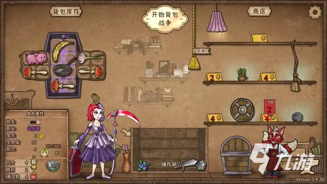 每一局對局開始,大家會有初始的13金幣,以及25生命值,后續(xù)每輪的開始獲取額外的金幣和血量;第3回合選擇技能物品需要花費(fèi)5塊,第8回合選擇轉(zhuǎn)職物品需消耗10塊??墒褂媒饚湃ベ徺I商店中的物品,商店里面的物品分為不同品質(zhì),普通,罕見,史詩,傳說,神級,越往后品品質(zhì)越高,每次商店都會有不同幾率刷出新的5個商品。