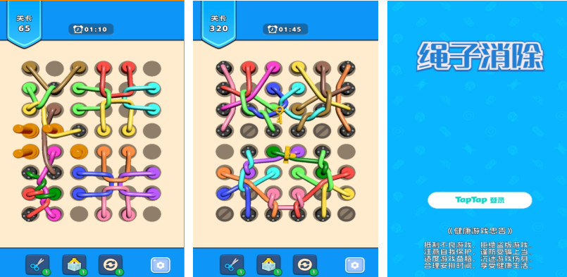 解開繩子就是款利用解繩子方式進(jìn)行闖關(guān)的免費好玩游戲,關(guān)卡設(shè)定多樣都能讓大家解開形形色色的繩索,繩子組成的立體幾何圖案看上去極為精致,解開繩子的流程解壓感源源不斷,超前的解壓互動體驗令繩子游戲愛好者著迷,本作畫面塑造也很簡單帶來的沉浸式解繩子體驗更加有趣。