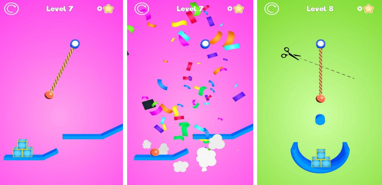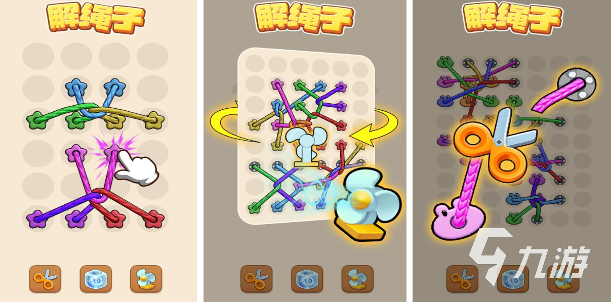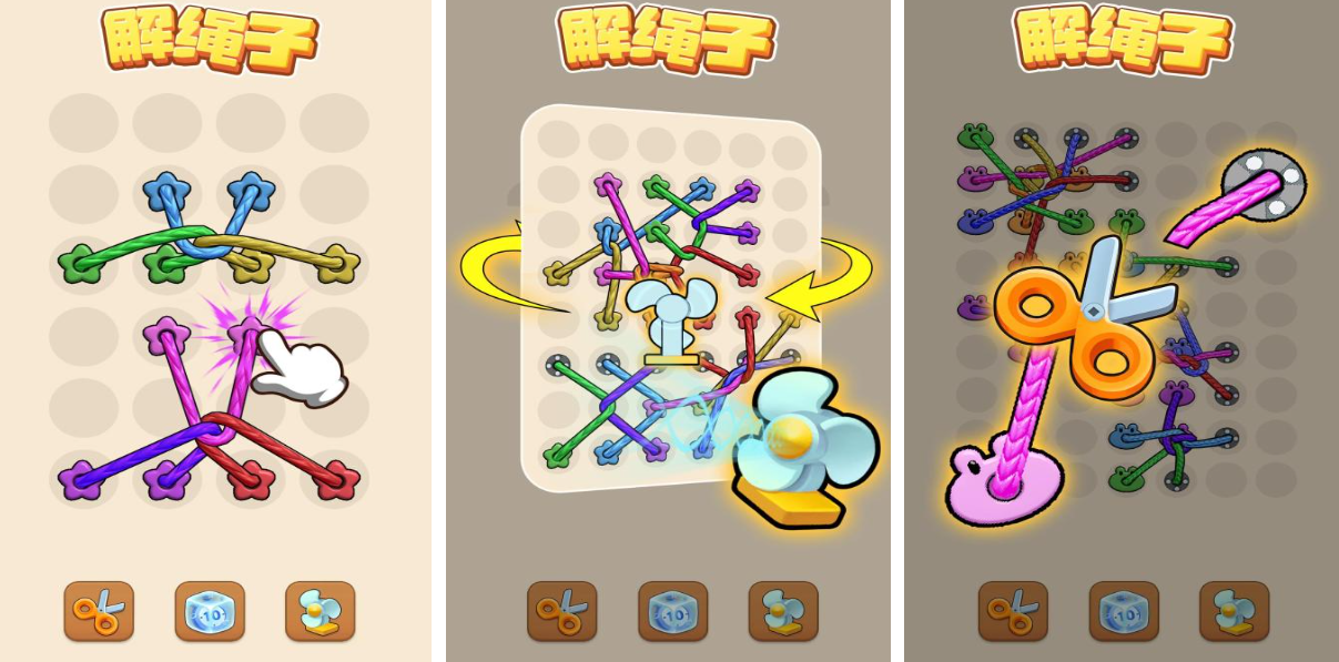 本作是款能給大家?guī)頍o比解壓觸感的免費解繩子手游,特殊的解謎元素跟解壓感都會讓大家心馳神往,只需選擇并解開不同的繩索就可以完成任務(wù),還設(shè)有風(fēng)扇和剪刀等特殊的道具可以使用,游戲節(jié)奏完善快速帶來的休閑感覺更加硬核,相信列位繩索解謎游戲粉絲會喜歡解繩子這款佳作。