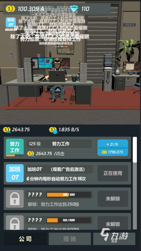 這款《打工人傳奇》手游以幽默卡通的畫面風(fēng)格,為玩家們帶來了很多生動(dòng)的現(xiàn)實(shí)生活,點(diǎn)擊屏幕就可以輕松的賺取金幣,用金幣來提升角色的屬性,并且在這里解鎖更多的擺攤資源,從而以錢生錢來讓自己的人生起飛,3D的建模效果再搭配上一些搞笑的音效,可以讓玩家們更好的沉浸其中。