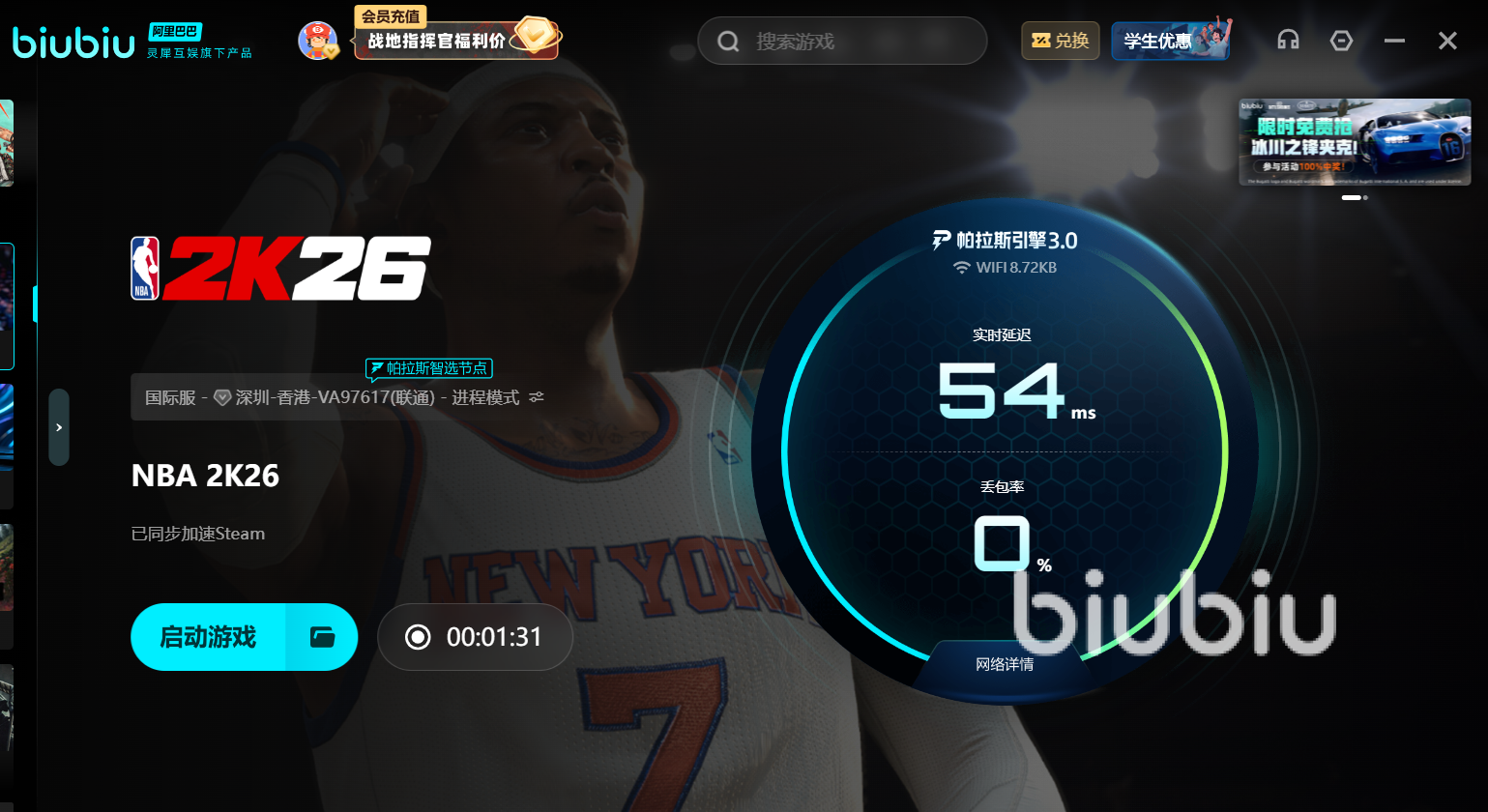 使用biubiu加速器不僅是攻克網(wǎng)絡(luò)卡頓的利器,更是享受超值福利的好時(shí)機(jī)。新用戶注冊即可獲得長達(dá)24H極速體驗(yàn),此外輸入【biubiu不掉線】即可暢快延遲72小時(shí),以上兩項(xiàng)福利疊加使用便能在NBA2K26的籃球世界中暢享累計(jì)高達(dá)96小時(shí)的超長加速,無需擔(dān)憂網(wǎng)絡(luò)波動(dòng)困擾。