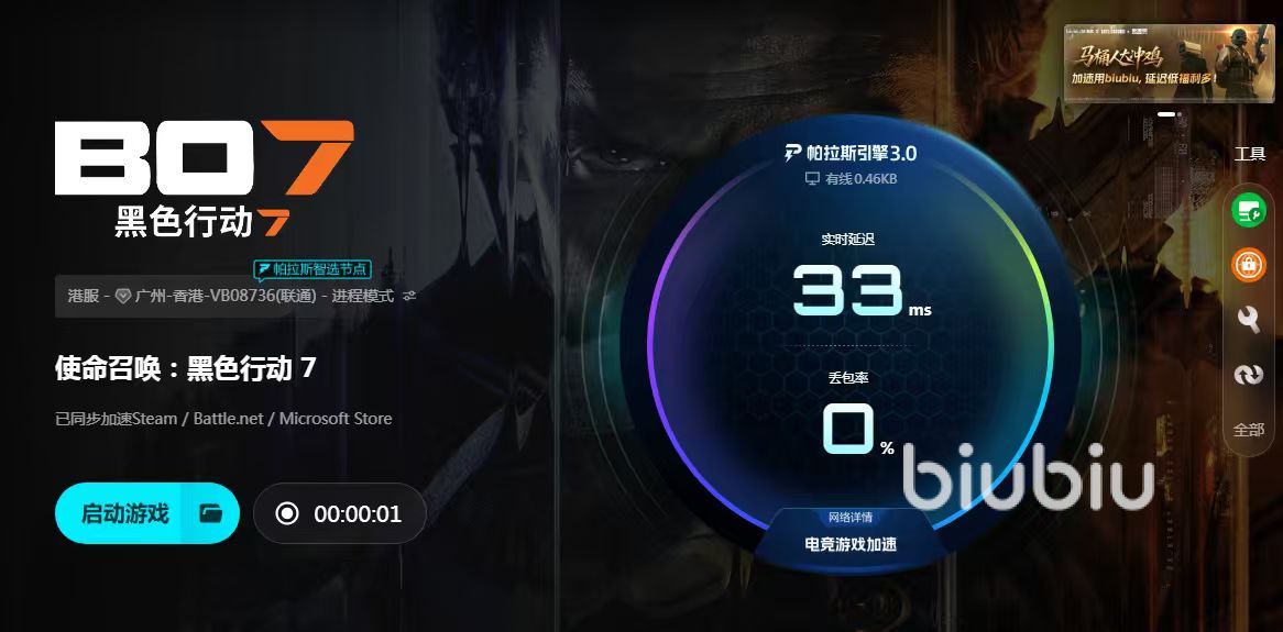 使命召喚黑色行動(dòng)7黑屏閃退卡頓延遲丟包怎么辦?這款游戲是不少小伙伴都非常期待的fps大作,擁有十分震撼的畫面效果,加上緊張刺激的多人對(duì)戰(zhàn)形式以及創(chuàng)新合作的玩法,吸引了不少玩家。不過有的用戶反映在體驗(yàn)的過程中會(huì)遇到閃,卡頓等多種情況,所以想知道該怎樣處理,大家不妨試試使用適合的提速應(yīng)用,這是相對(duì)簡單有效的方式。