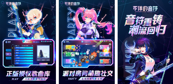 《不休的音符》也是一款鋼琴音樂手游。游戲的畫風讀到了賽博朋克未來感的畫風。游戲有海量的歌曲曲庫,你可以隨機去挑戰(zhàn)不同的歌曲,還是同樣的經(jīng)典玩法會有不同的炫彩白塊飛出游戲界面,你要集中注意力點擊這些炫彩白塊,就能彈奏出不一樣的音符與音樂。這款游戲里還有音樂會友是環(huán)節(jié),你可以在這里找到和自己擁有同樣音樂品位的朋友。