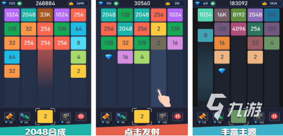 在經(jīng)典的2048基礎(chǔ)之上,又融入了創(chuàng)新式的合成玩法,游戲開(kāi)局之后將會(huì)呈現(xiàn)出各種帶有數(shù)字的方塊,通過(guò)精準(zhǔn)瞄準(zhǔn)以及點(diǎn)擊屏幕的方式,將帶有數(shù)字的方塊成功發(fā)射,當(dāng)兩個(gè)帶有數(shù)字的方塊放在一起之后,就會(huì)完成合成的任務(wù),簡(jiǎn)單的游戲規(guī)則合成的方塊越多,獲得的分?jǐn)?shù)就會(huì)越高,還有6個(gè)不同的主題以及豐富多樣化的玩法。每一個(gè)關(guān)卡中也呈現(xiàn)出了獨(dú)特的道具系統(tǒng)。
