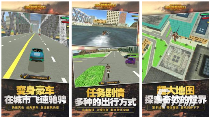 繩索蜘蛛英雄3是款跟蜘蛛俠相關(guān)的高自由度生存冒險(xiǎn)游戲,本作劇情飽滿且具有巨大面積的地圖,自由探索、自由接受任務(wù)的玩法十分另類(lèi),你將化身蜘蛛俠在偌大的城市里與罪犯?jìng)兌分嵌酚?,最讓玩家意想不到的是,游戲?nèi)的蜘蛛俠居然可以隨意變身,你可以變身為跑車(chē),在城市中隨意飛馳執(zhí)行任務(wù)。