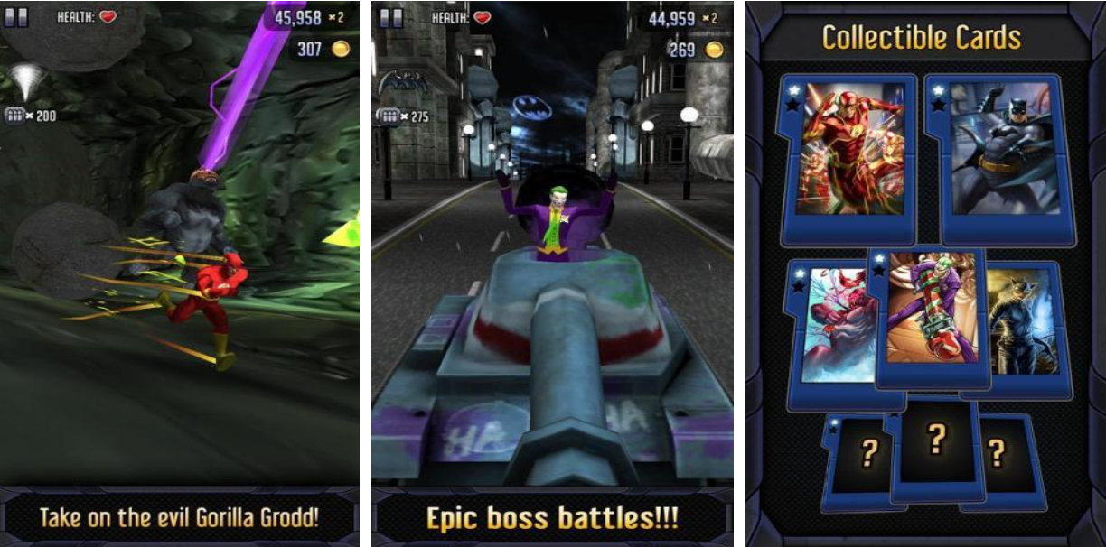 本作是款根據(jù)DC漫畫(huà)改編的暗黑風(fēng)格跑酷類(lèi)游戲,游戲中有很多DC英雄可供玩家們隨意挑選,每種英雄都可以利用超能力進(jìn)行跑酷冒險(xiǎn),在奔跑的途中你還會(huì)遇到很多DC漫畫(huà)里的反派,擊敗這些反派會(huì)得到大量獎(jiǎng)勵(lì)和經(jīng)驗(yàn)值。游戲畫(huà)風(fēng)3D立體而且場(chǎng)景塑造很完美,將暗黑風(fēng)格的哥譚市完美地展現(xiàn)了出來(lái)。