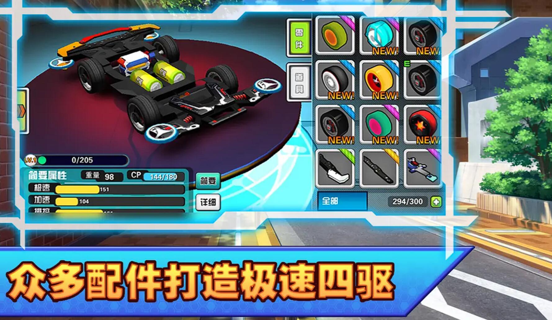 四驅(qū)車改裝DIY游戲,核心是零件搭配與賽道競速。游戲中的幾大元素:底盤、馬達(dá)、輪胎等部件可自由組合,不同配置影響賽車速度、抓地力與穩(wěn)定性,而且本作中的賽道包含彎道、陡坡等地形,改裝的賽車需要適應(yīng)不同賽道特性,所以說大家要開動腦筋diy屬于你的賽車以適應(yīng)不同的地圖需求,而且本作的diy的樂趣比比賽更吸引人,看著自己組裝的賽車沖過終點線,成就感遠(yuǎn)超使用預(yù)設(shè)賽車。