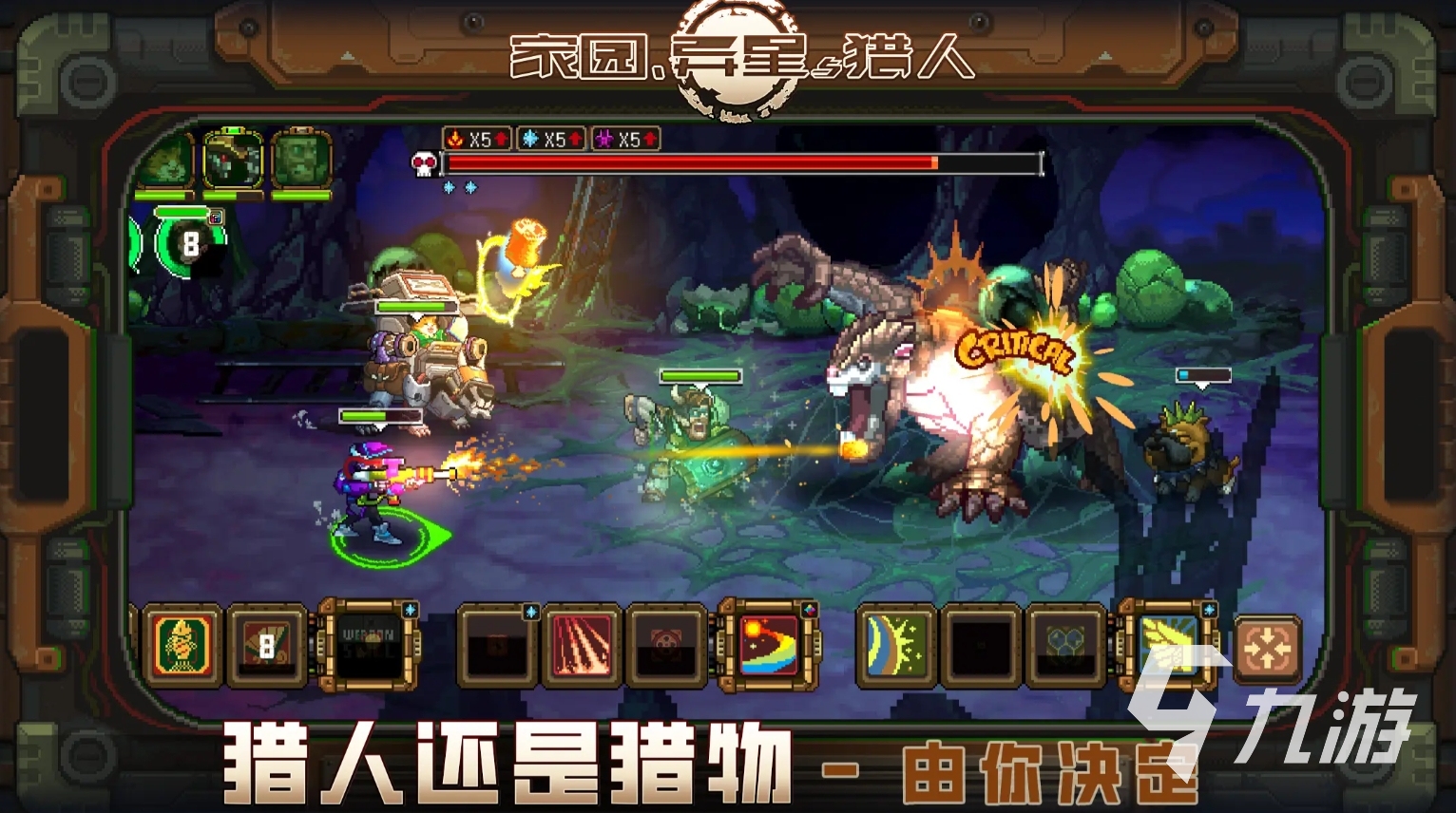 在這個(gè)十分獨(dú)特的異星家園上,玩家將展開自己的外太空狩獵之旅,所需要面對(duì)的獵物不光有長(zhǎng)相奇特的怪物,還有那些臭名昭著的兇徒。玩家們將在多位精英獵人中挑選自己喜歡的三位來組建成狩獵隊(duì),通過為他們構(gòu)建不同的技能流派,合理地搭配每位精英獵人的裝備,來令他們能應(yīng)對(duì)各式各樣的危險(xiǎn),完成在異星上的狩獵任務(wù)。