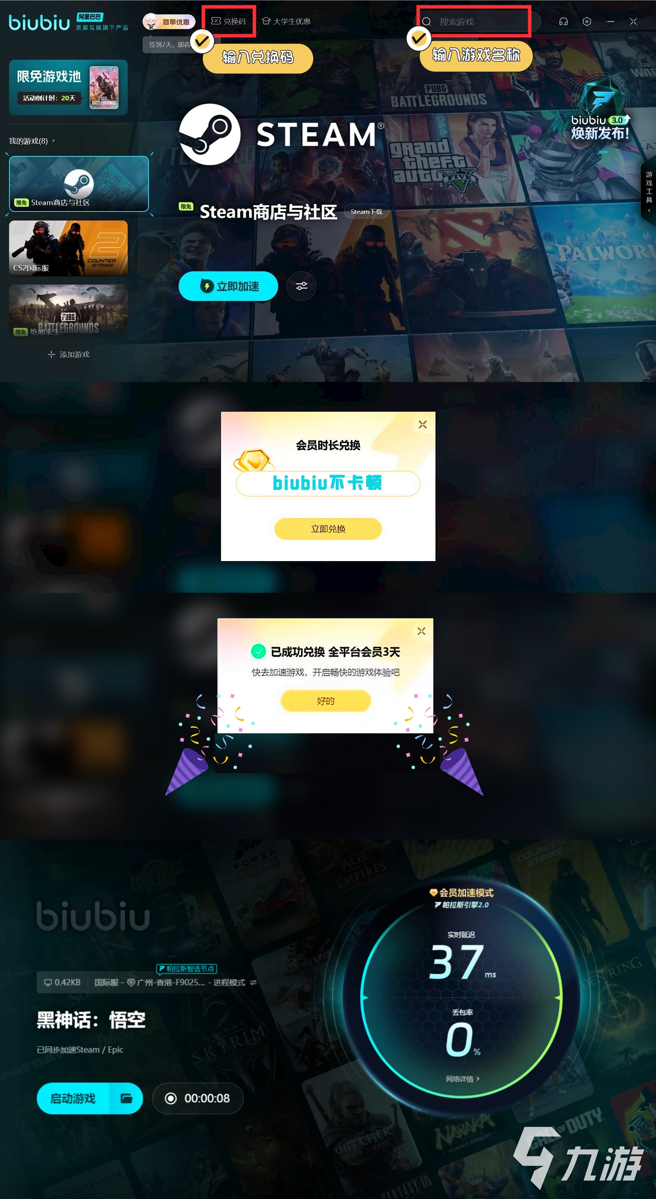 那么大家在了解這個(gè)角色的時(shí)候可能會(huì)遇到卡頓或黑屏的情況,這時(shí)候就得提提咱們的“biubiu加速器”了,它能幫玩家嗖嗖地下載游戲速度提升好幾倍,現(xiàn)在注冊(cè)的新用戶(hù)還能享受24小時(shí)的免費(fèi)加速時(shí)長(zhǎng),而且新老用戶(hù)只要輸入兌換碼【biubiu不卡頓】,還能再額外獲得三天免費(fèi)加速時(shí)長(zhǎng),這對(duì)玩家來(lái)說(shuō)是非常好的福利,大家都可以去試試。