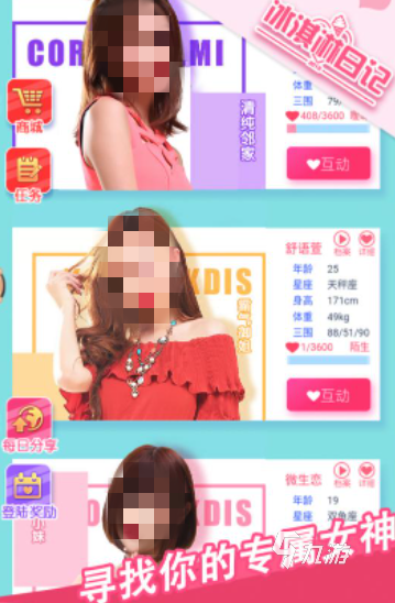 這款游戲特別將角色真人化,完全可以滿足大家對(duì)美的肯定,準(zhǔn)有你喜歡的女性。游戲?yàn)樽尨蠹业膽賽?ài)過(guò)程更有真實(shí)感,其中圍繞你和她的劇情經(jīng)歷可謂是跌宕起伏,而且還能隨時(shí)語(yǔ)音與妹子溝通,甚至有朋友圈功能,讓你了解屬于她的煙火氣。游戲會(huì)將你和她每一次的心動(dòng)瞬間化作一張張相片,每次翻看,你都會(huì)體驗(yàn)到愛(ài)情的甜與美。