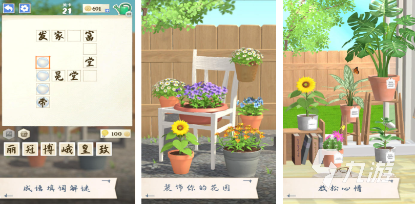 這是小編玩過(guò)最佛系休閑的一款填寫成語(yǔ)主題手游,成功將養(yǎng)花模式和成語(yǔ)知識(shí)進(jìn)行組合,成語(yǔ)愛好者可以在培養(yǎng)花朵的途中學(xué)習(xí)成語(yǔ),利用成語(yǔ)解謎闖關(guān)的方式還可獲取金幣購(gòu)買花卉,很特殊的解謎、養(yǎng)花機(jī)制讓大家放松心情,培養(yǎng)鮮花+裝飾花園的佛系玩法娛樂(lè)性不錯(cuò),填寫漢字完成成語(yǔ)解謎任務(wù)的游戲內(nèi)容更有趣,清新的畫面與輕量級(jí)內(nèi)容也是本作標(biāo)配。