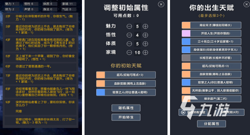 作為一款以修仙為主的單機(jī)游戲,它是以文字類型為主的,所以并不能看到里面的各種角色,而是會(huì)通過(guò)文字的方式顯示自己每個(gè)年齡所具備的修為以及身法、體質(zhì)等各方面的能力,可通過(guò)調(diào)整初始屬性的方式讓自己在修仙的時(shí)候更順利。作為一款以修仙為主的模擬器,只要開(kāi)始劇情以后玩家就能創(chuàng)造出一個(gè)屬于自己的世界。
