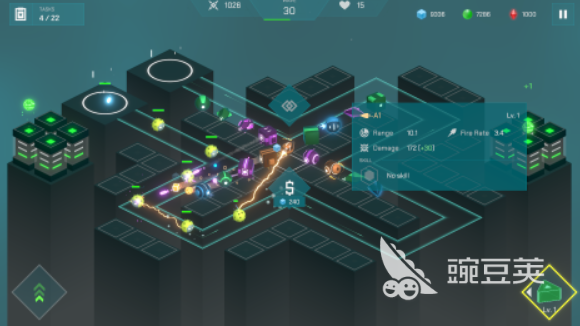 十字防守采用簡潔大氣的3D賽博朋克風格,金屬質(zhì)感的場景設(shè)計、流暢的炮臺造型以及霓虹光影效果,共同營造出濃厚的科幻氛圍。玩法圍繞隨機建造與合成機制展開,玩家利用初始資源搭建基礎(chǔ)炮臺,并通過合并兩個相同等級與類型的塔,隨機生成更高級別的防御單位,提升整體輸出能力。