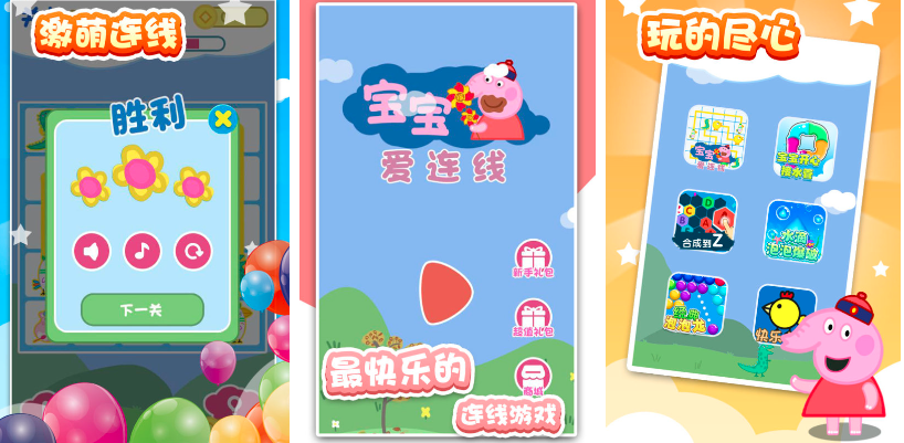 《寶寶愛(ài)連線》游戲會(huì)鍛煉玩家的觀察能力,通過(guò)連線的方式開啟挑戰(zhàn)。每一個(gè)游戲的設(shè)定都是超可愛(ài)的卡通角色,需要將這些小寵物們進(jìn)行連接。只需要手指點(diǎn)擊一下,就可以連接在一起,并消除掉。Q版可愛(ài)的卡通畫風(fēng),融入了超多的關(guān)卡。每一個(gè)布局都會(huì)有著不同的小動(dòng)物,還有泡泡消除,會(huì)飛的小鳥以及合并消除等游戲模式。這些小游戲?qū)τ谛∨笥褋?lái)說(shuō)都是非常有教育意義的,你可以一邊玩游戲,一邊學(xué)習(xí)知識(shí),發(fā)揮大腦思維并闖關(guān)。伴隨著休閑解壓的背景音樂(lè),讓大家體驗(yàn)到更歡樂(lè)的娛樂(lè)方式,家長(zhǎng)們可以和小朋友一起互動(dòng)并闖關(guān)。