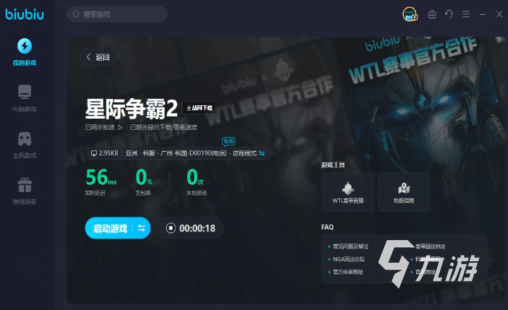 大家在biubiu軟件中星際爭霸2的加速效果界面可以看到與星際2相關的游戲工具,像是WTL的賽事直播,還有地圖指南,一些針對游戲的問題也有FAQ,方便大家快速解決問題。