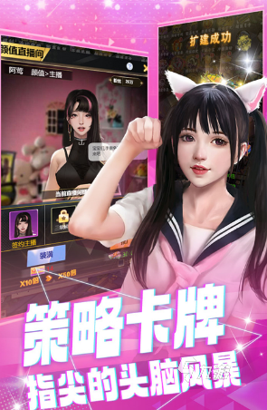 這是一款別具一格的模擬經(jīng)營卡牌類養(yǎng)成手游。玩家將化身一位直播公司的老板,從最初的一無所有,憑借著自己的智慧和努力,最終成為一代富豪,把直播公司打造成行業(yè)內的領軍企業(yè)。玩家要真實地模擬經(jīng)營各個直播間,憑借自身的人格魅力,去招募風格各異的美女主播,為她們量身打造專屬的直播間。還要及時提升主播的各方面屬性,確保直播間始終保持熱度,首富的生活就從這款游戲開始啦!