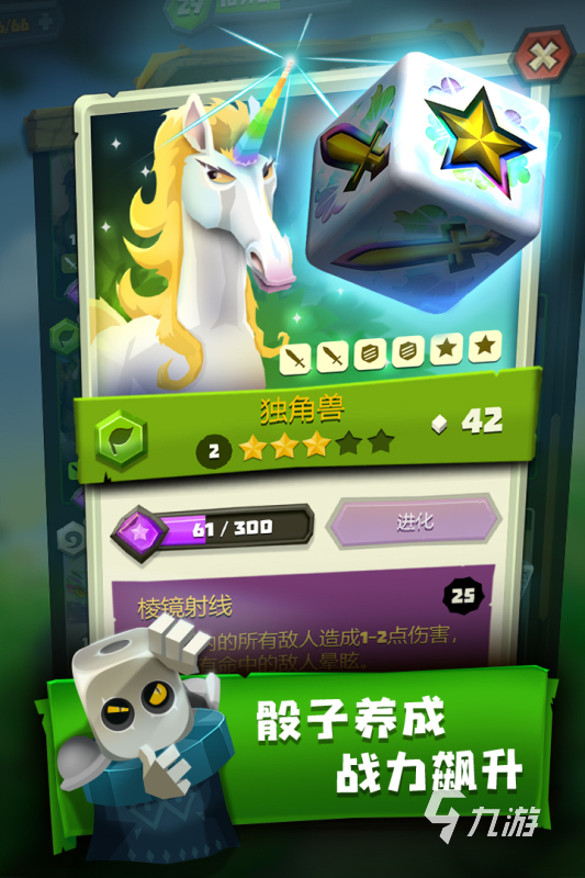 骰子是玩家角色,收集它們,組建不同類型陣容,發(fā)起一輪輪進(jìn)攻,組建最強(qiáng)陣容。每個(gè)骰子戰(zhàn)斗力不同,玩家需要一步步培養(yǎng)骰子戰(zhàn)斗力。