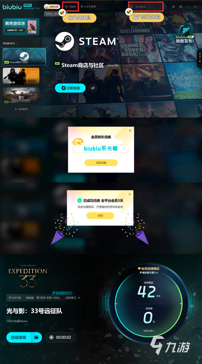 在眾多加速器中,biubiu加速器是一個(gè)非常值得推薦的選擇。biubiu加速器專門針對(duì)國(guó)內(nèi)外游戲的網(wǎng)絡(luò)優(yōu)化需求,提供了一系列加速服務(wù),能夠有效幫助玩家降低延遲,避免卡頓和掉幀。對(duì)于新用戶來(lái)說(shuō),biubiu加速器提供了3小時(shí)的免費(fèi)加速時(shí)長(zhǎng),讓玩家能夠在嘗試之前感受其效果。此外,通過(guò)輸入口令【biubiu不卡頓】,玩家還可以額外獲得72小時(shí)的加速時(shí)長(zhǎng),進(jìn)一步延長(zhǎng)游戲體驗(yàn)。biubiu加速器操作簡(jiǎn)單,玩家只需在首頁(yè)搜索《光與影33號(hào)遠(yuǎn)征隊(duì)》,點(diǎn)擊加速,便能快速實(shí)現(xiàn)網(wǎng)絡(luò)優(yōu)化,享受流暢的游戲體驗(yàn)。
