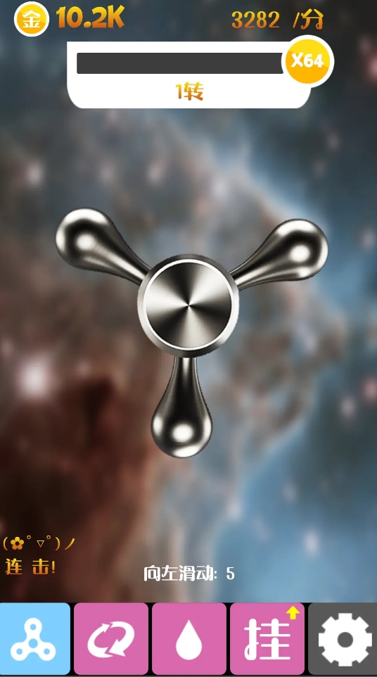 它是款以設(shè)計(jì)指尖陀螺為核心的作品,里邊有多款不同類型的材料可成為玩家們制作陀螺的原料,更有一些成品陀螺能被人們所改造,通過為它們上油、更改些陀螺的基礎(chǔ)設(shè)定,來完成對(duì)它們的升級(jí)。同時(shí),各位可在游戲內(nèi)隨時(shí)去試轉(zhuǎn)陀螺,看自己改進(jìn)后的陀螺能擁有多少轉(zhuǎn)速,不滿意時(shí)還能立刻重新去進(jìn)行設(shè)計(jì)或?yàn)樗鼡Q不同的部件。所要使用到的材料均可在游戲內(nèi)完成兌換,獲取起來很方便。