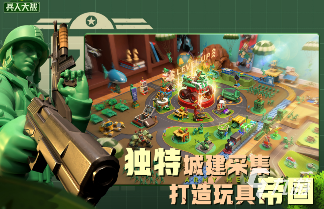 這是款控制士兵們打群架的戰(zhàn)爭游戲,但是玩家們手下的士兵并不是真人,而是一群綠色的兵人玩具哦!玩家可以在軍事基地生產(chǎn)處不同兵種的兵人,有些兵人可以駕駛戰(zhàn)車上戰(zhàn)場,有些兵人也能開著戰(zhàn)斗機(jī)對目標(biāo)轟炸,雖然控制的都是一些小玩具,但是這些玩具打起架來跟真實戰(zhàn)爭沒什么兩樣,游戲中還有黃色、紅色、藍(lán)色的兵人,這些兵人都是你的敵人哦!快帶領(lǐng)綠色的兵人軍隊消滅他們吧!