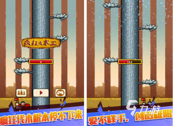 這款采用卡通風格的砍樹游戲,憑借著游戲的特色玩法以及相關(guān)的內(nèi)容,獲得了很多玩家的喜歡,更是非常容易讓人上癮的一款小游戲。在砍伐樹木的過程中,玩家使用的是手中的斧頭,除了有身臨其境砍樹的身影,讓人在砍樹時,仿佛在現(xiàn)實生活當中一樣,還要在砍樹的時候掌握技巧,千萬不要讓樹的方向倒向自己。
