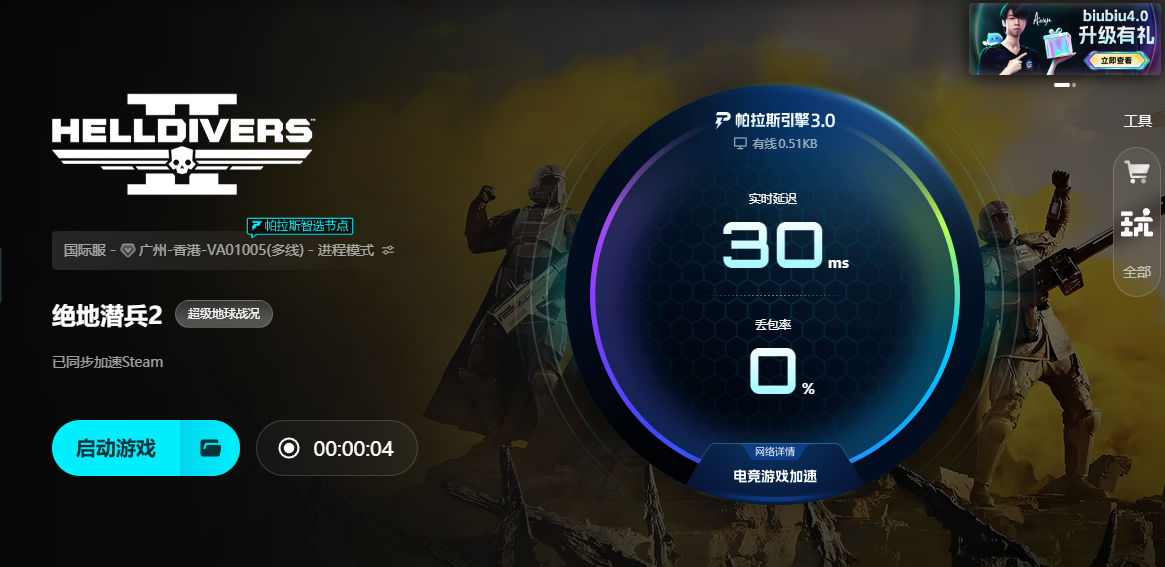 《絕地潛兵2》的閃退和報錯問題,雖然復(fù)雜多樣,但網(wǎng)絡(luò)不穩(wěn)是其中最核心的誘因之一。通過硬件升級和驅(qū)動更新固然重要,但只有搭配高效穩(wěn)定的加速器,才能從根本上解決問題。biubiu加速器憑借最新的帕拉斯引擎3.0技術(shù)以及與電競冠軍Aixleft的深度合作,打造出了業(yè)界領(lǐng)先的加速體驗。它不僅提升了數(shù)據(jù)傳輸?shù)姆€(wěn)定性,也極大降低了游戲中的斷線閃退風(fēng)險。
