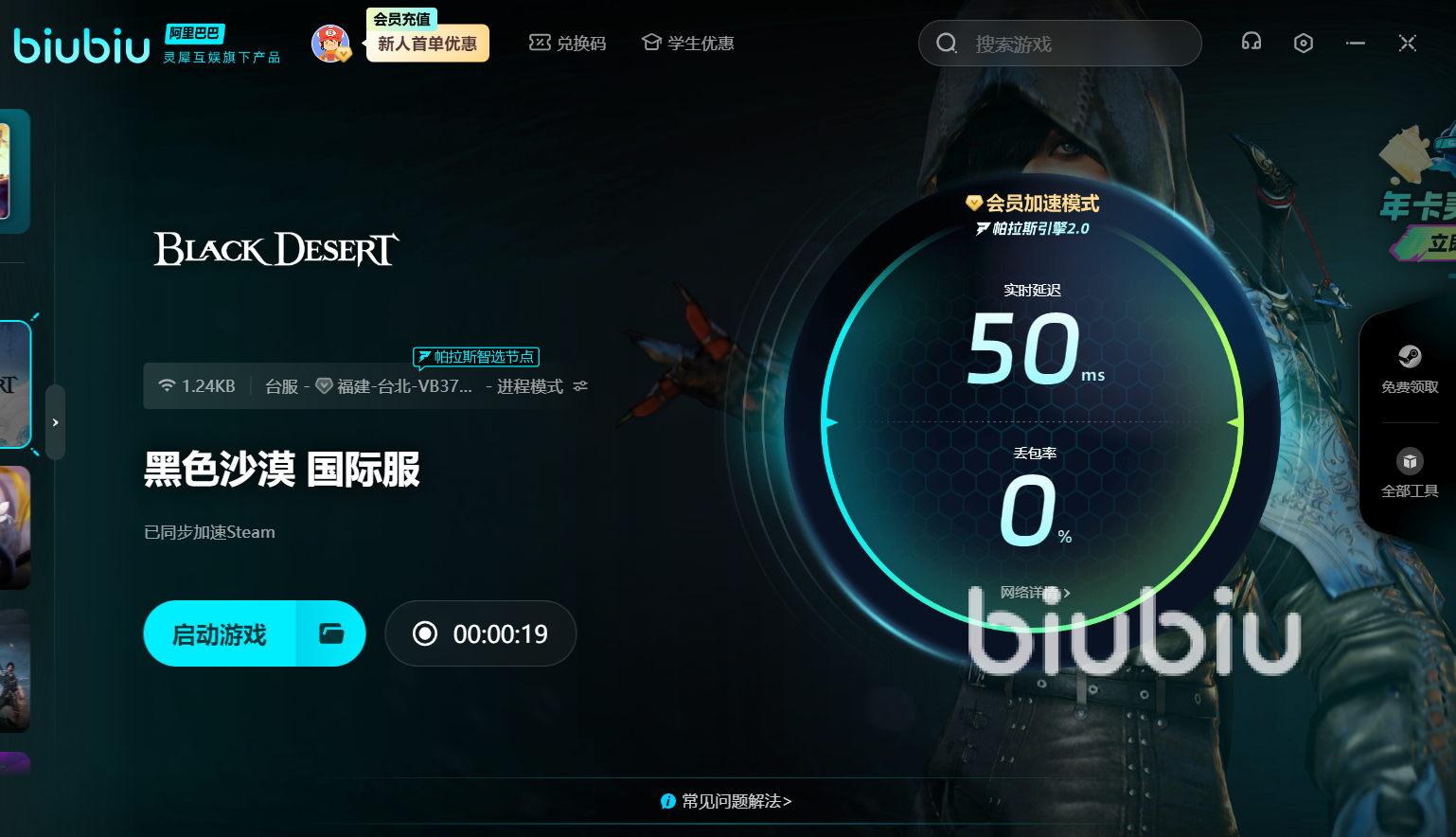 針對網(wǎng)絡延遲誘發(fā)的卡頓,加速器是首選利器,以biubiu加速器為例,通過全球分布的多節(jié)點模式,智能篩選最優(yōu)加速節(jié)點,大幅減少丟包率和波動,提升連接穩(wěn)定性。玩家只需啟動加速,即自動分配最佳線路,同時支持手動切換其他可用節(jié)點,雙重保障黑色沙漠的流暢體驗。尤其在海戰(zhàn)或多人大規(guī)模PVP中,加速功能顯著消除動作卡頓,讓操作反饋更及時。實踐表明,使用biubiu后ping值能降低50%以上,有效避免因網(wǎng)絡問題帶來的不必要挫敗感。