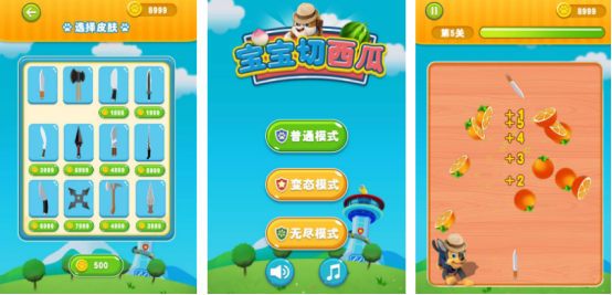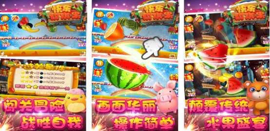 一款游戲有豐富的美味水果組合而成,這一定會(huì)讓人們心曠神怡,而早在多年之前切西瓜小游戲,就深受很多玩家的喜歡和熱愛,覆蓋所有的人群。直到現(xiàn)在,雖然也創(chuàng)作出很多創(chuàng)新式的手游類型,但是此類游戲依舊是人們情有獨(dú)鐘的,在屏幕上隨機(jī)會(huì)彈出各種美味的水果啊,比如西瓜或者是草莓等等,利用指尖滑動(dòng)屏幕即可完成切除的任務(wù)。只要符合過關(guān)條件后即可解鎖下個(gè)關(guān)卡。