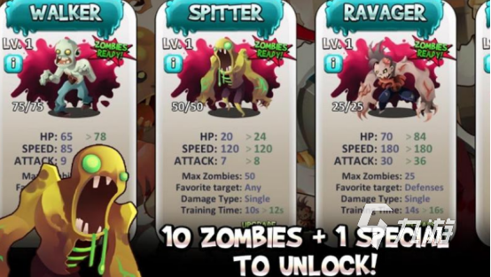 有強大的僵尸系統幾十種不同的特色僵尸部隊,采用漫畫風格,各種僵尸全部都以卡通畫形象完美展現,全面降低恐怖感的同時又加入了割草元素,同時也能夠確保擁有愉快的感受。多種不同僵尸類型,每種具體的擊殺方式都是完全不同的,比如妖女,具備眩暈技能,小伙伴們要使用火光炮才能夠快速將其擊敗并扭轉局面。