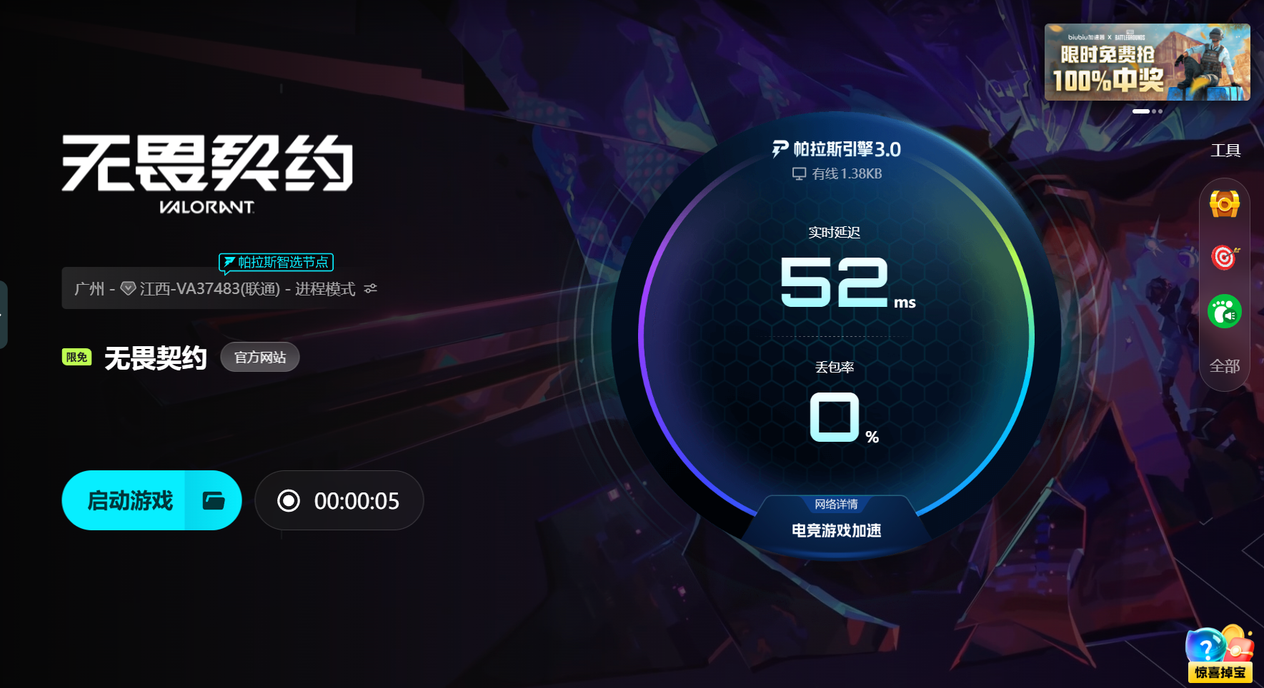 開啟加速后的變化非常明顯。匹配進入游戲只需幾秒,加載條一氣呵成再也不會停在中間。進入戰(zhàn)局后延遲穩(wěn)定,技能釋放和槍械判定同步無誤。爆破點交火、換彈、探點都能實時反饋。語音溝通清晰無延遲,跨區(qū)開黑也不再出現(xiàn)斷線或卡屏。整個游戲節(jié)奏重新流暢,開局不慌,收尾穩(wěn)健,真正的競技狀態(tài)重新找回。
