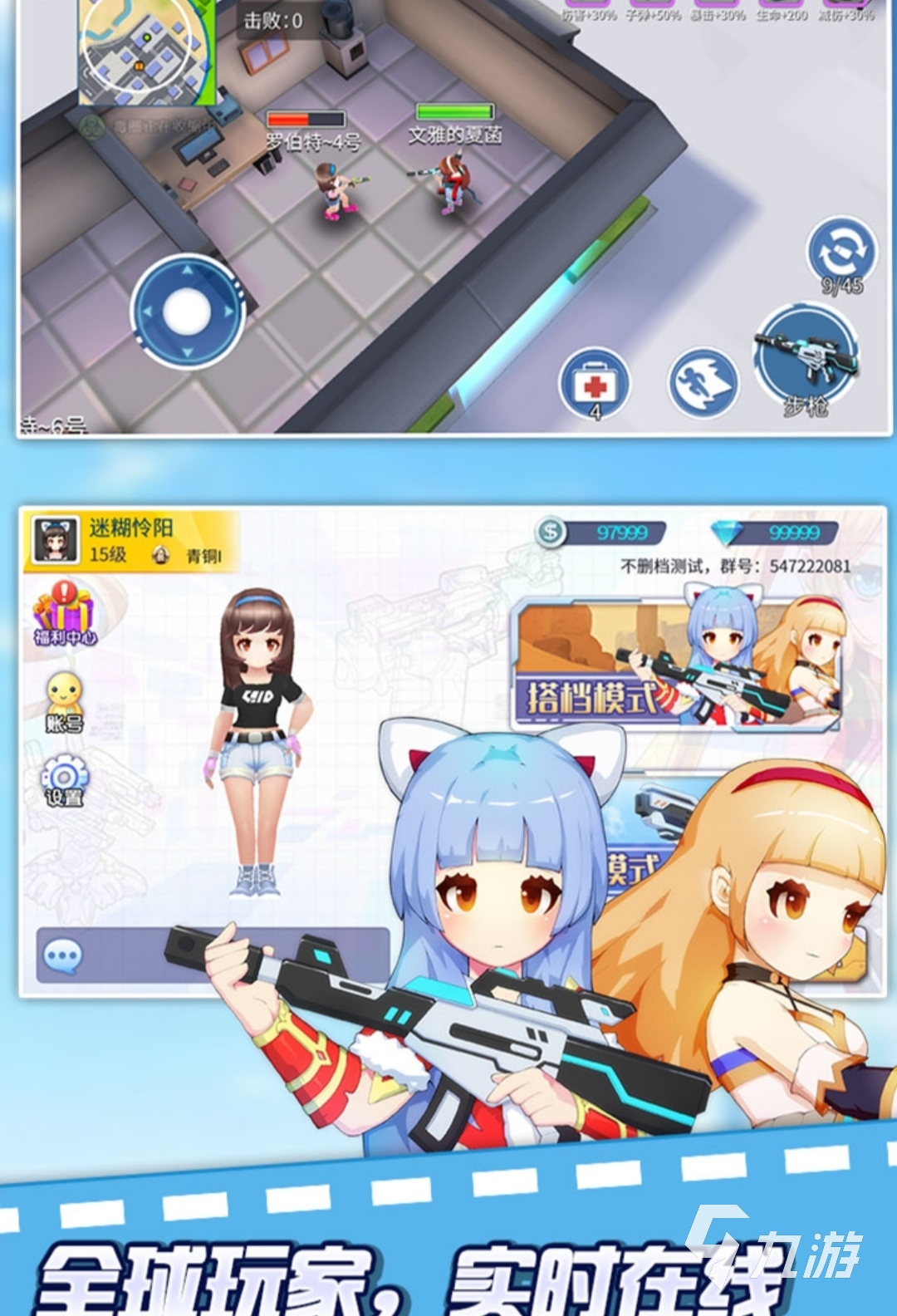 一款二次元萌系吃雞游戲,玩家在游戲中可以自定義自己的角色形象,選擇卡通風(fēng)的二次元少女,在商城中挑選可愛的衣服換上,開局后通過搜尋物資、擊敗敵人來我去,勝利。