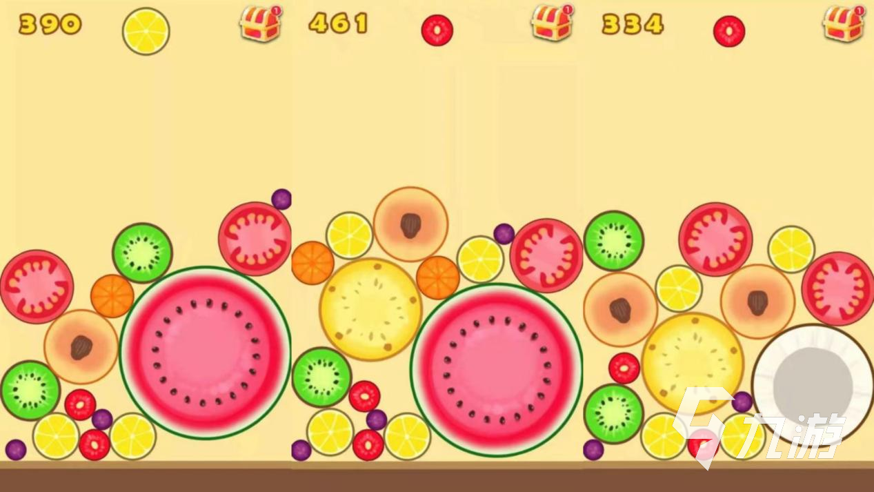 《合成大西瓜》特別適合打發(fā)時間玩。這里有很多種大小不同的水果,每一次都是隨機出現(xiàn)一種水果,玩家需要把相同的水果合在一起,然后就會變成另一種水果,最終變成的水果就是大西瓜,得到大西瓜就可以結(jié)束此關(guān)卡,并且在掉落水果的過程中還會出現(xiàn)擺動,有時候沒有掌控好位置就會使它卡在那里不能進行合成,置放水果的地區(qū)是有限的,所以需要動動你聰明的腦袋有技巧的順利闖關(guān)。告訴玩家一個小技巧一定不要側(cè)重一邊擺放水果,盡量使置放水果區(qū)域達到平衡,這樣才會使游戲不容易很快結(jié)束。