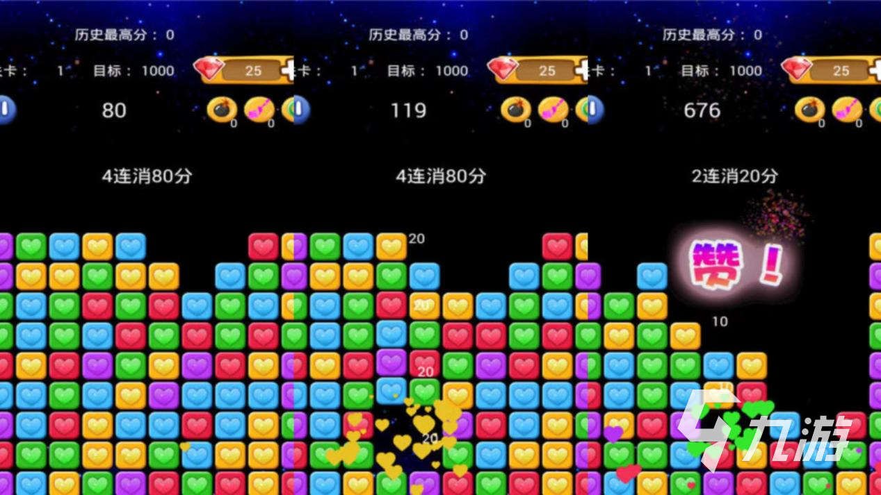 《消除星星甜心版》這里面有黃色、紅色、藍色、綠色、紫色五種顏色的星星,但是不會因為顏色多而顯得畫面雜亂,相反的是從視覺方面讓人看起來非常舒適。這種游戲在下載排行榜上也是名列前茅,很多人都喜歡玩這類游戲,所以足以證明此游戲很有可玩之處。通過自己的智慧把所有的星星都消除吧,一次又一次不斷的刷新高分紀錄,還可以分享給他人一起玩耍比分,告別無聊時間。