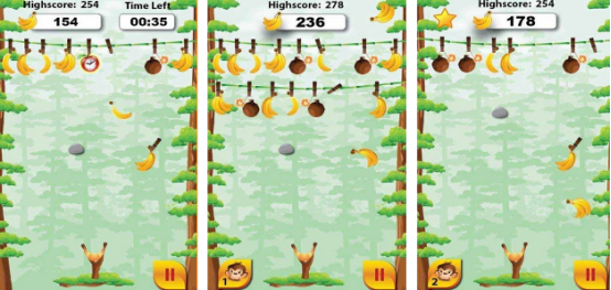 很經(jīng)典的休閑手游,活潑的猴子為了香蕉不斷努力著,游戲具有無比清新的畫風(fēng),動(dòng)感的音效,在十幾年之前成為很多人非常喜歡的特色類型。據(jù)了解,早在2013年時(shí)就已經(jīng)推送,只是當(dāng)前在蘋果系統(tǒng)當(dāng)中出現(xiàn),之后安卓手機(jī)變得更加火爆,智能手機(jī)也逐漸普及,猴子愛香蕉也成為大家喜歡的游戲模式。通過發(fā)射石頭的方式將屏幕中的橡膠打落,猴子快速吃到。
